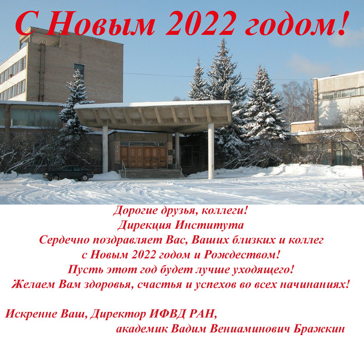 Дорогие коллеги, друзья! Дирекция Института поздравляет Вас с Днем российской науки! Прошедший год в научном плане был для нас хоть и непростым, но в целом успешным. В этот день уместно напомнить о Наиболее значимых результатах научных исследований наших сотрудников за 2021г. Желаем дальнейших успехов! Искренне Ваш, Директор ИФВД РАН, Академик Вадим Вениаминович Бражкин
