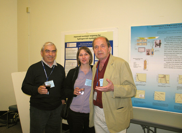 Гордоновская конференция по высоким давлениям, проходящая раз в 2 года, в 2006 году проходила в Университете «Новая Англия» (г.Биддефорд, США) с 25 по 30 июня. Председатель конференции 2006г. – Р.Беллер (ФРГ), вице-председатель – С.Тозер (США). Общее число участников конференции составило около 150 человек, было представлено 25 лекций и свыше 60 стендовых докладов. Д.Стивенсон (Калтех, США) сделал обзор современного состояния планетологии и физики планетных недр. Из недавних астрофизических результатов следует упомянуть обнаружения жидкого ядра у Меркурия, Марса и, возможно, Луны (!). Также заслуживает внимание установление состава Титана – спутника Сатурна. Оказалось, что основной породой Титана являются клатраты на основе льда. К 2006г. открыто уже свыше 160 планет в других звездных системах. Недавно впервые открыта планета с относительно малой массой (5.5 масс Земли). Р.Мастерс (Университет Сан-Диего, США) посвятил свою лекцию спорным вопросам физики и химии Земного ядра. Неопределенность в измерениях температуры плавления Fe в мегабарном диапазоне давлений приводит к большому разбросу оценочных концентраций легких примесей в ядре – от 3 до 12%. Химический состав ядра все еще остается под вопросом. Анизотропия сейсмических свойств внутреннего ядра Земли также пока не находит удовлетворительного объяснения. Полученные 5 лет назад теоретические данные о существенном возрастании анизотропии упругих свойств ГПУ железа при высоких температурах в мегабарном диапазоне давлений, по-видимому, оказались ошибочными. Вопросов о составе и свойствах ядра Земли пока больше, чем ответов. Лекции Р.Шена (Аргонская лаборатория, США) и М.Вилдинга (Университет Уэльса, Великобритания) были посвящены изучению структуры жидкостей и стекол при высоких давлениях. Р.Шен представил новые результаты по изучению структуры а -SiO2, а -MgSiO3 и а - Fe до 70 ГПа в камере с алмазными наковальнями с использованием синхротронного рентгеновского излучения. B а -SiO2 наблюдалось размытое превращение в стекло с шестерной координацией кремния по кислороду. Были также представлены данные измерения плотности расплава In (до 9 ГПа) и а -GeO2 – до 16 ГПа методом рентгеновского поглощения. Заметим, однако, что, проведенные 10 лет назад в ИФВД РАН измерения плотности а -GeO2 с помощью тензодатчика были на порядок точнее. М.Вилдинг представил данные по структуре стекол B2O3 и Mg SiO3 под давлением до 6 ГПа, полученные с помощью дифракции нейтронов в камере типа «тороид». Диапазон давлений при этих измерениях значительно ниже, чем при использовании камер с алмазными наковальнями, однако использование нейтронов позволяет получать данные по структурному фактору стекол в широком диапазоне волновых векторов до 25 Å-1, что позволяет восстановить функцию радиального распределения. М.Росс (Ливерморская лаборатория, США) предложил теоретическое объяснение выполаживания кривых плавления d-металлов и Хе. По мнению М.Росса, аномальное поведение кривых плавления связано с формированием в соответствующих расплавах плотных икосаэдрических кластеров. Т.Аренс (Калтех, США) сделал обзор свежих экспериментальных данных ударно-волновых исследований плавления пород мантии – SiO2, Mg SiO3, Mg2 SiO4. Отмечается возможность перегрева кристаллов в ударно-волновых экспериментах. И.Даниэль (Университет Лиона, Франция) рассказала об «in